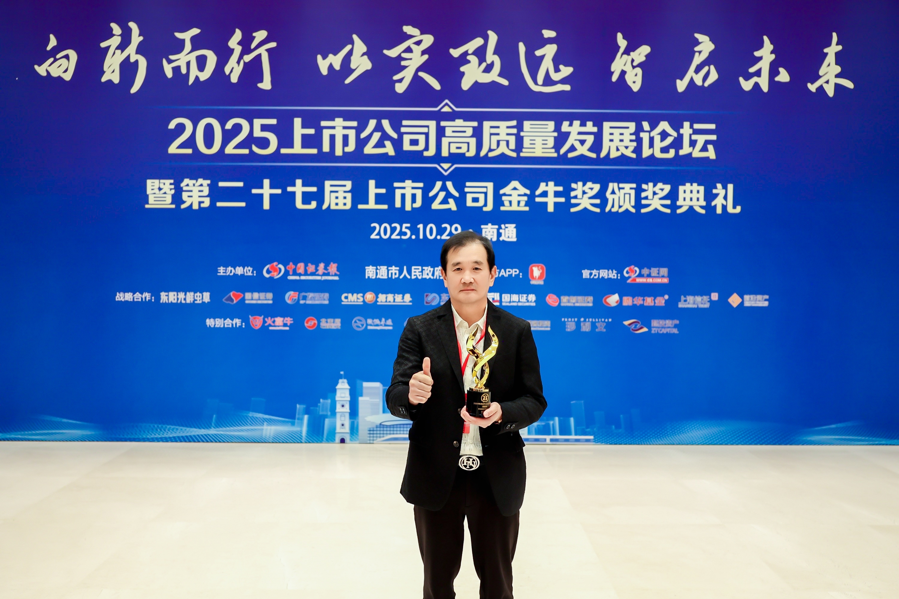 2025年10月29日,,,,由中国证券报、南通市人民政府联合主理的2025上市公司高质量生长论坛暨第二十七届上市公司金牛奖颁奖仪式在江苏南通盛大举行,,,,公司董事长郭建刚先生荣获2024年度“金牛企业家立异奖”。。。